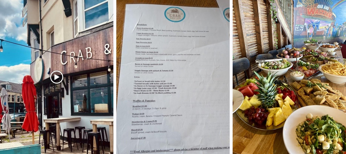 Discover Crab & Waltzer, a cozy cafe bar in Whitley Bay, serving delicious breakfast, lunch, and evening meals. Enjoy hot and cold drinks, a wide selection of beers, wines, and cocktails. Family-friendly with outdoor seating, takeaway, and delivery options. Visit us for great food, friendly service, and live music!